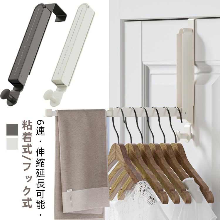 ドア 粘着式/フック式2タイプ選べる 貼るだけ/引っかけるだけのドアハンガー 扉 ハンガー 6本掛け 貼るだけ/引っかけるだけのドアハンガー 洋服掛け 折戸