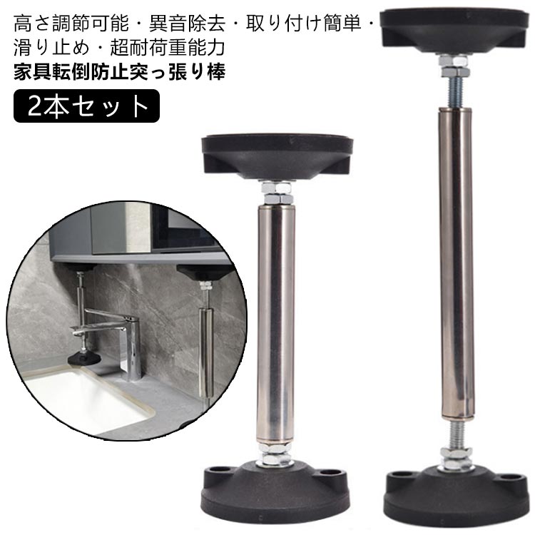 ステンレス製 転倒防止 30-45cm 耐震対策 天井用 家具転倒防止突っ張り棒 冷蔵庫 食器棚 滑り止め タンス 防災措置 棚 家具固定用 調整可能 耐震ポール 25-37cm つっぱ 狭い隙間用
