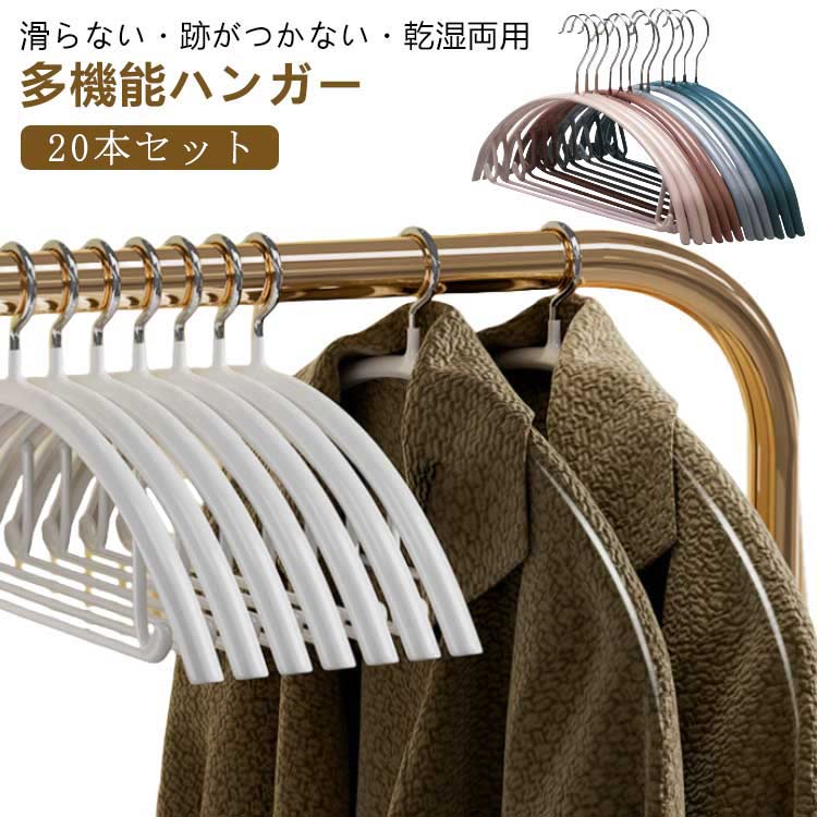 20本セット 滑り止め シワ防止 ハンガー すべらない かたくずれ防止 肩出ない おしゃれ 乾湿両用 多機能 物干しハンガー 防水 型崩れ防止 跡が付かないハンガー ノンスリッ 洗濯ハンガー