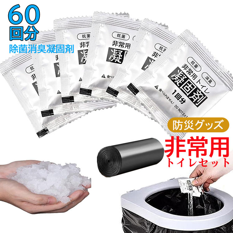 非常用トイレ凝固剤 個包装 60回分 100回分 ゴミ袋付き 消臭剤入り 防災グッズ 抗菌 消臭 登山 防災 渋滞 大便 小便 自宅 法人 学校 地震 避難 災害 断水