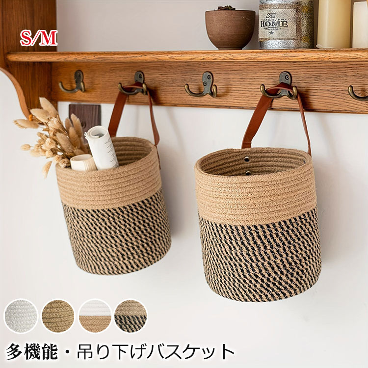 吊り下げバスケット 2個セット キッチン収納かご 綿 収納バスケット ロープバスケット フルーツバスケット 壁掛け用バスケット ウォールポケット 玄関収納 小物入れかご インテリア 雑貨 ナチュラル