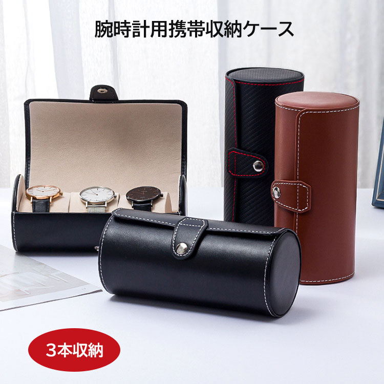 腕時計収納ケース 筒形 ブラック 黒 ブラウン 3本収納 携帯用 時計 腕時計 ケース watch case シンプル かっこいい コレクション ボックス ディスプレイ ウォッチボックス 収納 おしゃ