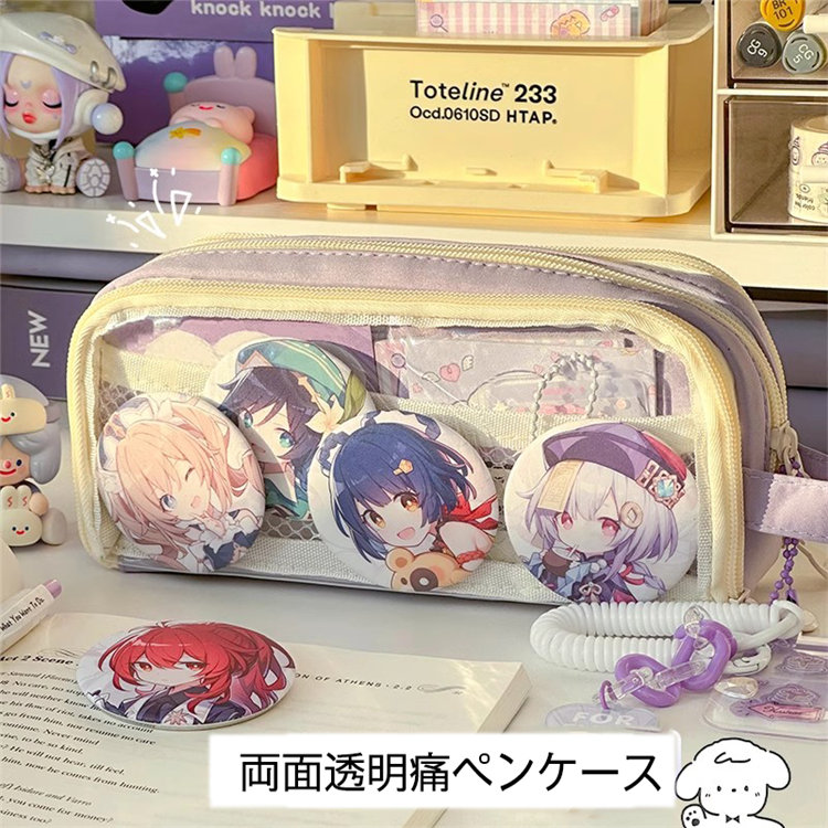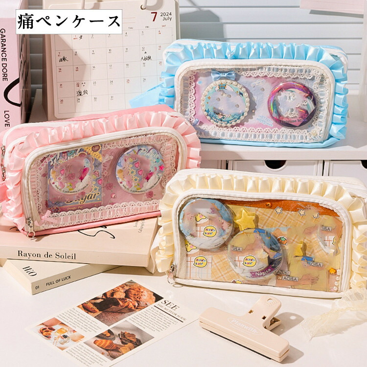 ペンケース 小学生 中学生 高校生 缶バッチ テスト 試験 筆入れ ポーチ かわいい バッジ入れ 通学 推し 推し活 痛 バ いたば いたばっぐ ヲタ オタク 人気 かわいい 通学 透明窓