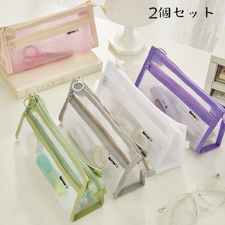 ペンケース 2個セット 大容量 小学生 中学生 高校生 オトナ 大学生 学生 スクール かわいい おしゃれ シンプル 筆箱 可愛 女の子 男の子 多機能 学校 テスト 試験 プレゼント 入学 人気 透