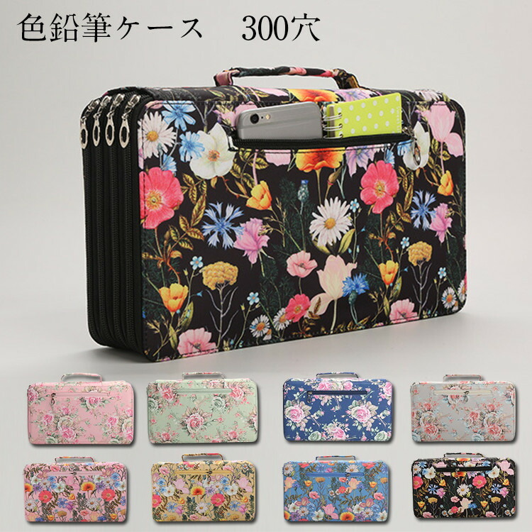 300穴 色鉛筆ケース 花柄 大容量 ペンシルホルダー 素描鉛筆 美術絵筆 色鉛筆 収納ケース シンプル 可愛い図案 花柄 おしゃれ 中学生 高校生 大学生 小学生 大人 手提げ