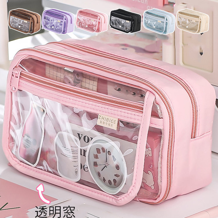 ペンケース 大容量 おしゃれ 筆箱 透明窓 クリアバッグ ケース 筆ケース 文具収納 学生 通学 かわいい