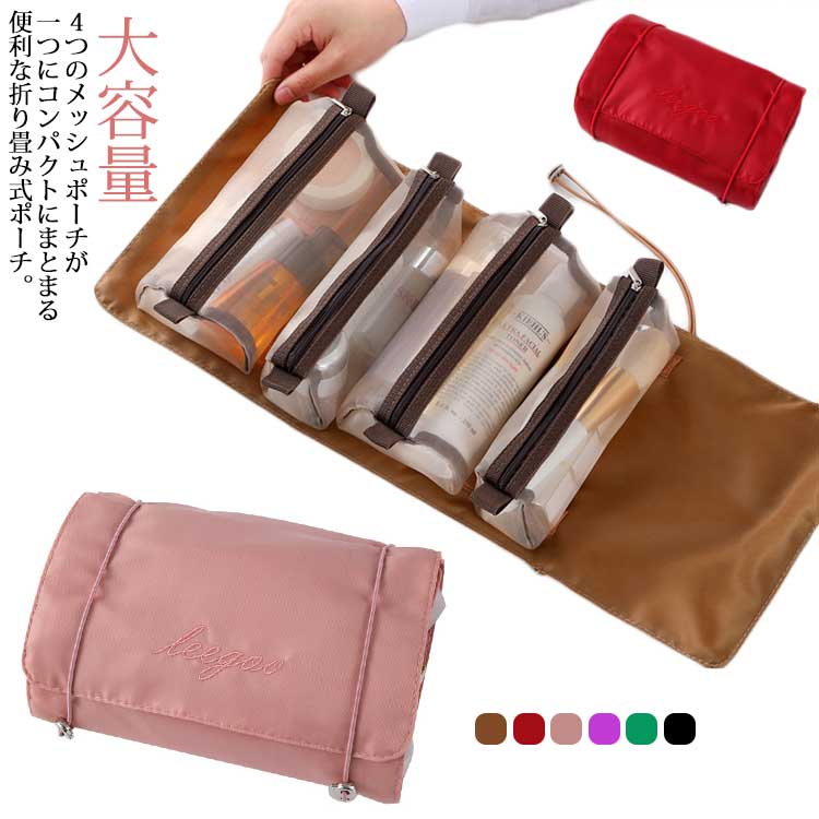 便利グッズ ポーチ 吊り下げ 洗面 パッキング メッシュ トラベルグッズ バッグインバッグ トラベルポーチ お風呂 2 女性 化粧品入れ 折り畳み 旅行