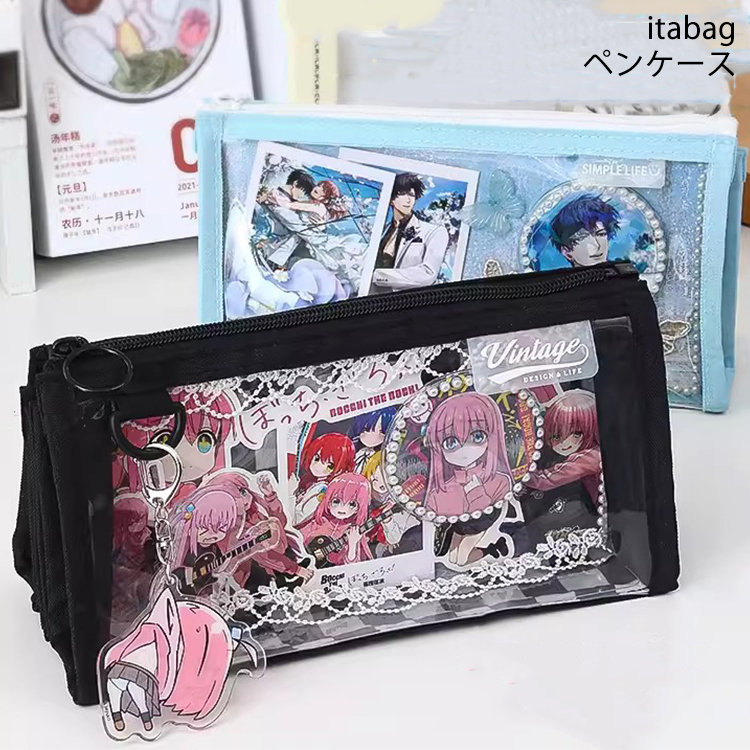 ペンケース 小学生 中学生 高校生 缶バッチ テスト 試験 筆入れ ポーチ かわいい バッジ入れ 通学 推し 推し活 痛 バ いたば いたばっぐ ヲタ オタク 人気 かわいい 通学 透明窓