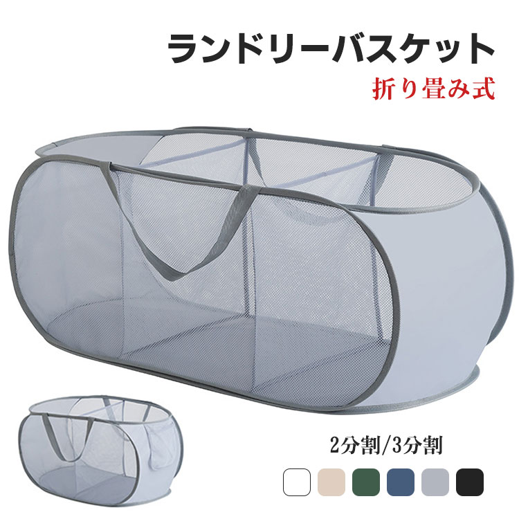 折り畳み式 ランドリーバスケット横型 2タイプ 2分割 3分割 軽量 丈夫 メッシュ 通気 洗濯かご 雑貨かご 小物入れ 収納バスケット コンパクト収納可能 大容量 多機能 洗濯籠 旅行 持ち運び可能