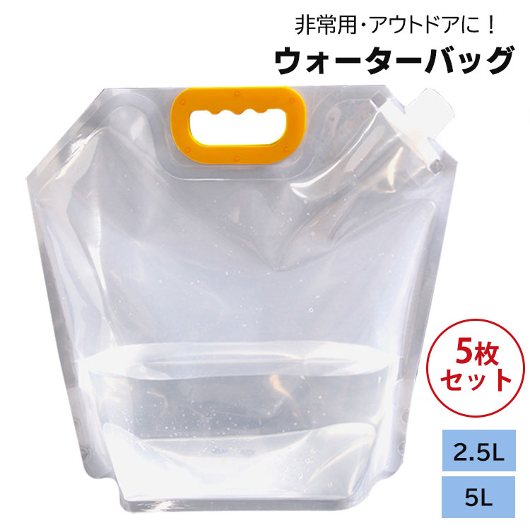 避難 防災グッズ ウォーターバッグ 5個セット ウォータータンク 非常用給水袋 折りたたみ式 ポータブル 5L 2.5L 水袋 持ち運びに便利 繰り返し使用も 安全性も高い アウトドア