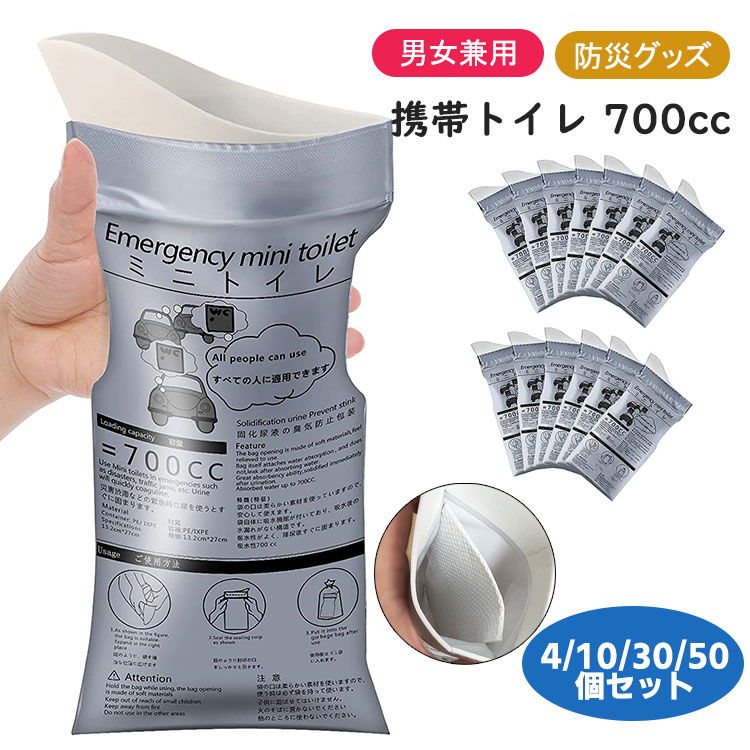 携帯トイレ 簡易トイレ コンパクト 非常用トイレ 男女兼用 瞬間吸収 消臭 不透明 700cc 小便 防災グッズ 地震 避難 災害 渋滞 登山 旅行 断水 自宅 学校 お得セット 4 10 30 50