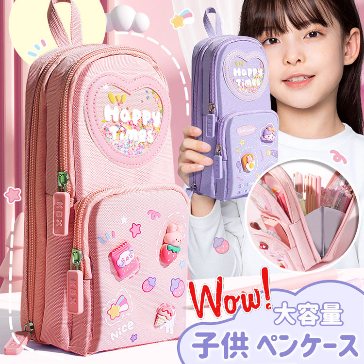 筆箱 ペンケース ペンポーチ 3層 大容量 ポーチ ペン立て おしゃれ かわいい 学生用 筆入れ 文具収納 便利 分類収納 小学生 女の子 入学準備 ピンク パープル プレゼント pen case