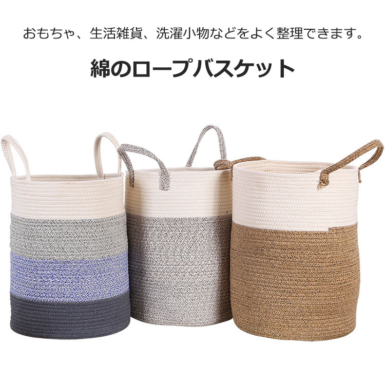 綿のロープバスケット ランドリー織りバスケット 取っ手付き 子供用品収納 おもちゃ 衣類 毛布 タオル収納 コットンロープバスケット 折り畳み式 脱衣籠 持ち手付き 3色 大容量 多機能