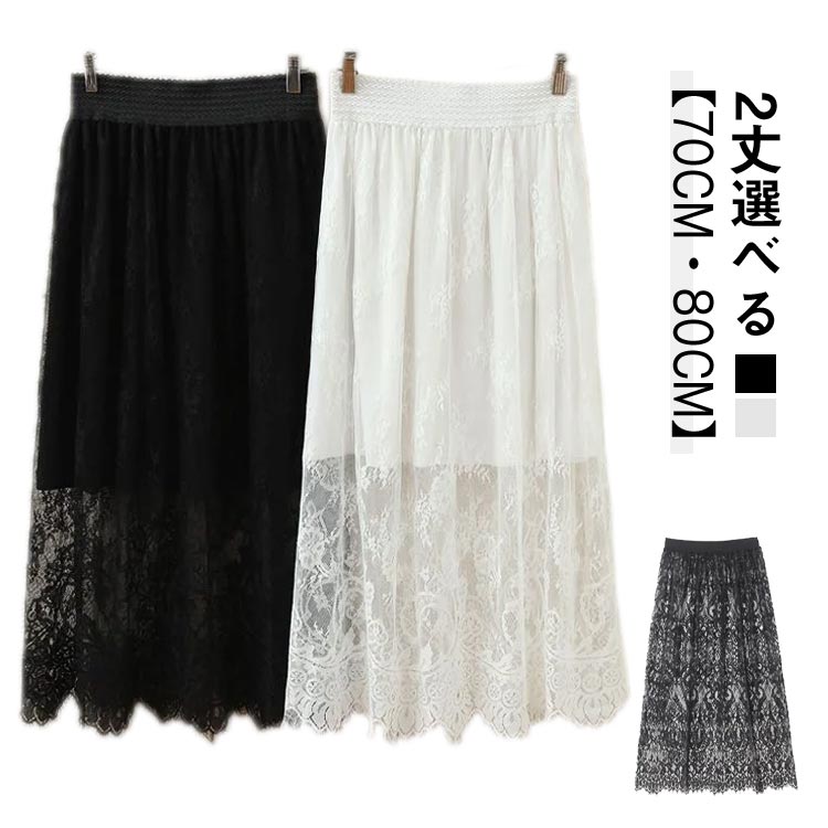 レース ペチコート 重ね着 スカート ロング インナースカート レース 黒 白 ブラック スカートインナー 下着 ナイトウェア レディース インナー 下着 ランジェリー ペチコート