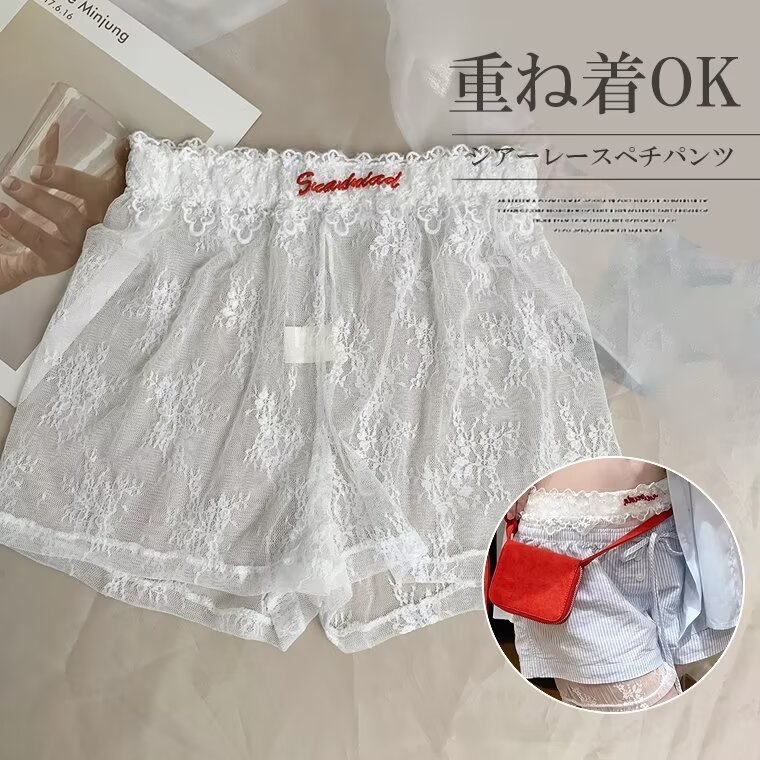 ウエスト部分を見せて可愛い インナーパンツ 見せパン ペチコート ペチパンツ シアーレース 薄手 透け防止 肌着 蒸れない ウエストゴム レイヤード ショートパンツ レディース レース ショーパン 可