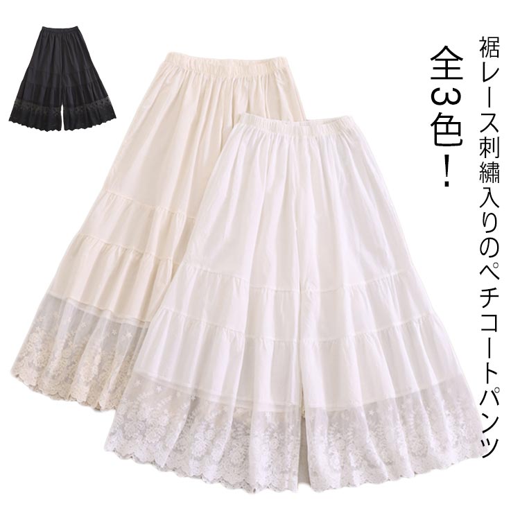 レース ペチコート インナーパンツ ウエストゴム 透け防止 ルームウエア ミニ丈 フレアパンツ 透けない 下着 ペチパンツ スカート下 肌着 かわいい おしゃれ インナーシ 無地
