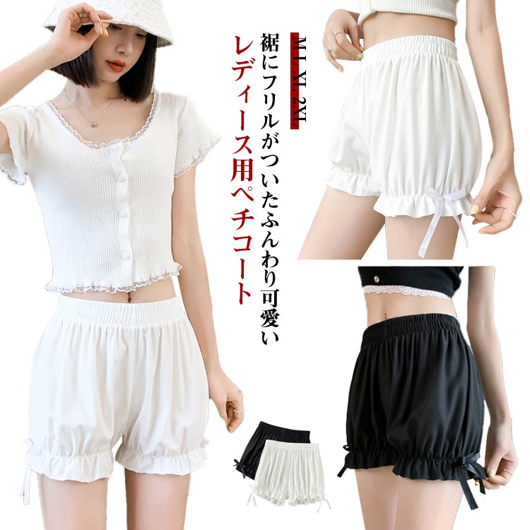 ペチコート フリル レディース 肌着 下着 ショートパンツ ペチパン インナーパンツ ショーパン リブ柄 ショートタイプ ウエストゴム 透け防止 4カラー フリル裾 無地 大きいサイズ