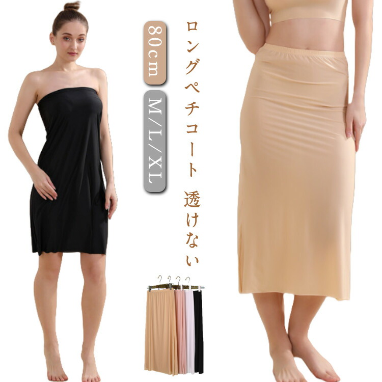 薄手 ペチコート ロング ストレッチ 冷感 ロングペチコート 透けない 80cm ボトムス ワンピース ウエストゴム インナー 大きいサイズ マタニティ シンプル 肌着 インナ 無地