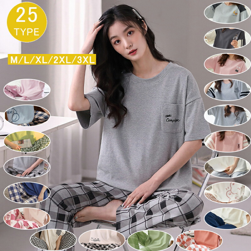 3タイプ 2サイズ フリーサイズ 大きいサイズ 接触冷感パジャマ レディース 半袖 ハーフパンツ 長ズボン ワンピース ルームウェア ナイトウェア カットソー 上下セット ゆったり かわいい
