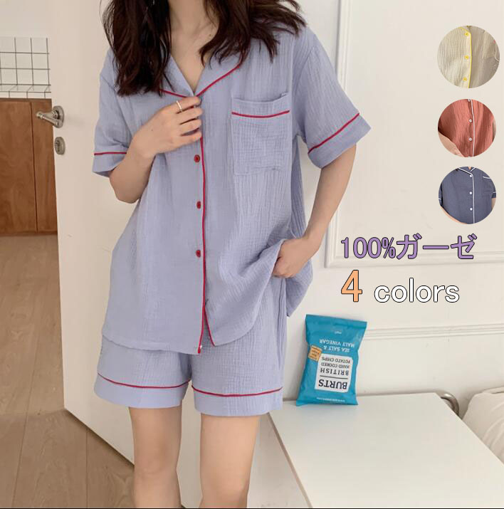 レディース ルームウェア綿100% ガーゼ パジャマ ルームウェア ガーゼ半袖&短パン 寝巻き パジャマ レディースパジャマ 大人 パジャマ 前開き 部屋着 リラックスウェア ナイトウェア 上下セット