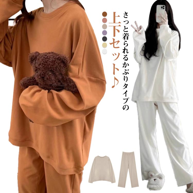 ゆったりでかわいい ルームウェア レディース 上下セット 大きいサイズ ゆったり トレーナー 部屋着 セットアップ
