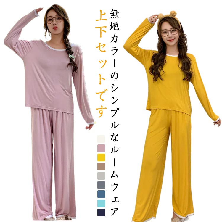 パジャマ 部屋着 ルームウェア かわいい 上下 セット 通年使える 春 寒暖差 リラックス 長袖 長ズボン