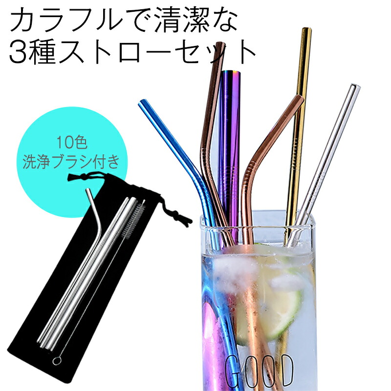 3点セット ストローセット ストロー3種 カトラリーフォルダが全て揃った高級感あるストローセット 衛生的な高級ステンレスの鏡面仕上げ