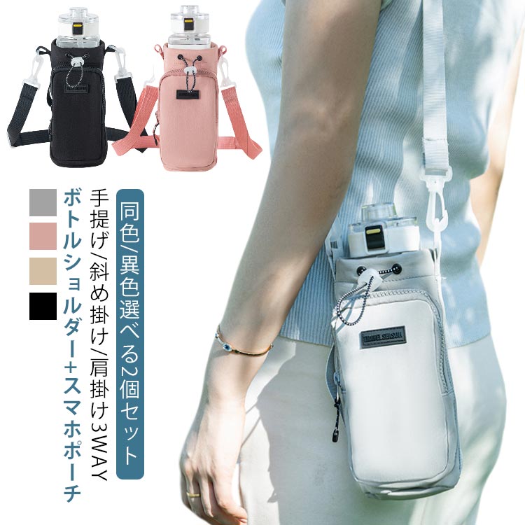 水筒カバー ストラップ スマホポーチ プール 3way 500ml-1000ml 水筒ホルダー スマホ 傘 撥水 水筒ケース レディース ペットボトルホルダー 長さ調節可能 ショルダー 持 タンブラー