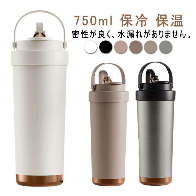 タンブラー ストロー付き マグボトル 蓋つき 保冷 大容量 750ml 保温 オフィス 持ち運び こぼれない 漏れ防止 暑さ対策 シンプル 屋外用 アウトドア コーヒーカップ