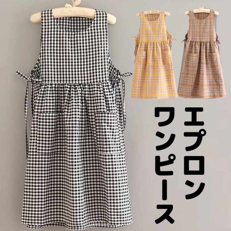 洋服感覚のエプロン 後ろも可愛くカバー くすみカラー シンプル可愛い エプロンワンピース 防水 ミドル丈 ポケット ゆったり ノースリーブ ワンピース ワンピースエプロン 重ね着 Aライン 韓国 フレ