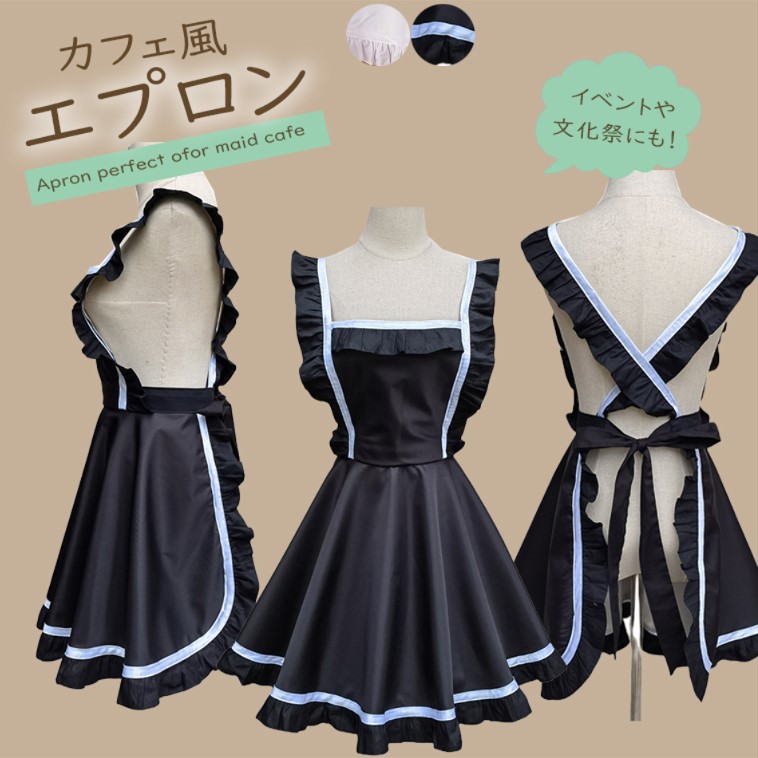 フリルがたっぷり付いたメイド風のデザイン 2色展開 ラブリー エプロン メイド服 メイド風エプロン プリンセス風 ひらひらフリル キッチン雑貨 後ろ結び 料理教室 新婚さんエプロン 制服 作業用