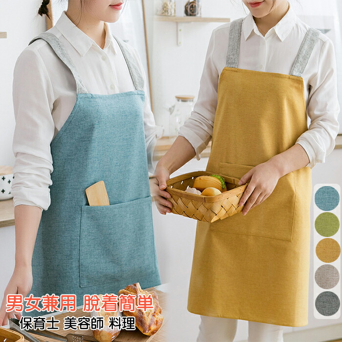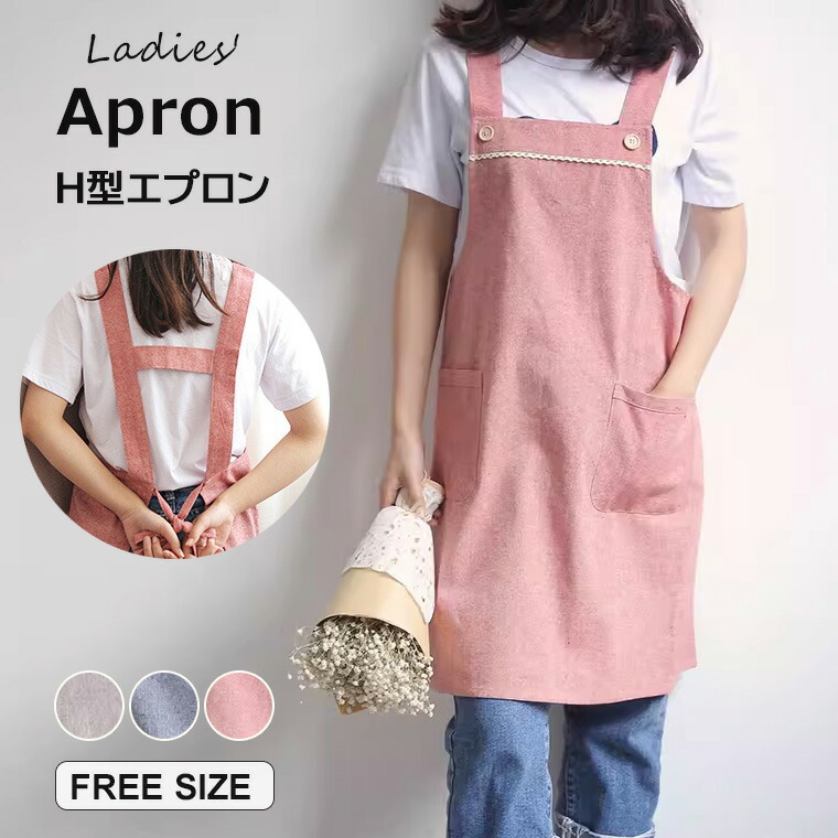 エプロン レディース メンズ 大きい 保育士 美容師 料理 大人 かぶるだけ 汚れ防止 人気 カフェ レストラン スタッフ ガーデン 着簡単 クロスバック ポケット付き H型 肩掛け