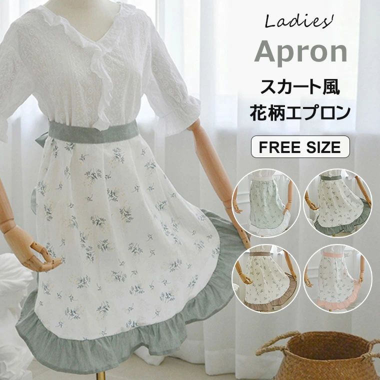 優しいが花柄が上品な雰囲気に 全4色 花柄 総柄 エプロン スカート風 キッチン雑貨 カフェエプロン 前掛けエプロン 腰掛エプロン 花屋さん 料理教室