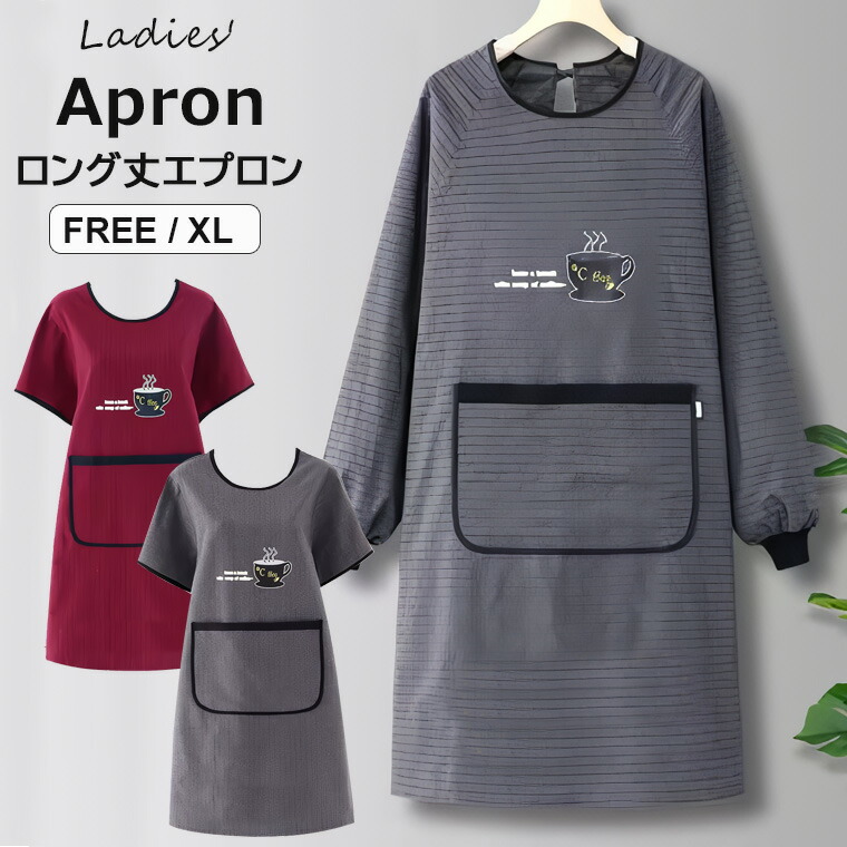ワンピース風 選べる3種類 半袖 長袖 ロング丈 ワークエプロン 業務用 スモック 保育士 レディース 飲食店 かわいいエプロン 割烹着 かっぽう着 カフェエプロン