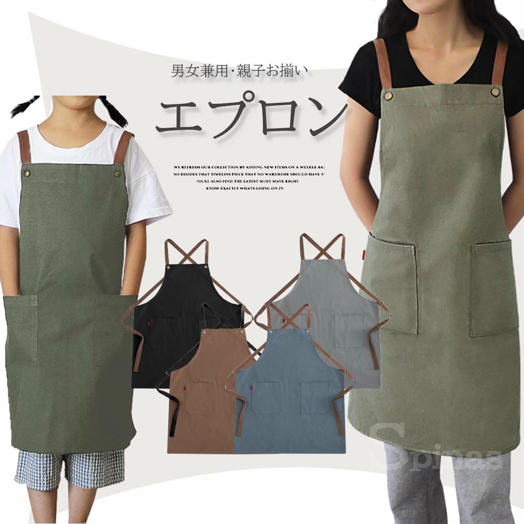 親子コーデもできる キッズ 子供用 大人用 撥水 エプロン バッククロス カフェ風 男女兼用 小学生 調理実習 ユニセックス お手伝いエプロン