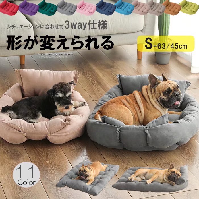 シチュエーションによって形が変えられる Sサイズ 豊富な11カラー選べる ペットベット 3way ソファ マット ソフト 四季 猫 犬用ベッド クッション 丸洗える ペット用品 あったかい