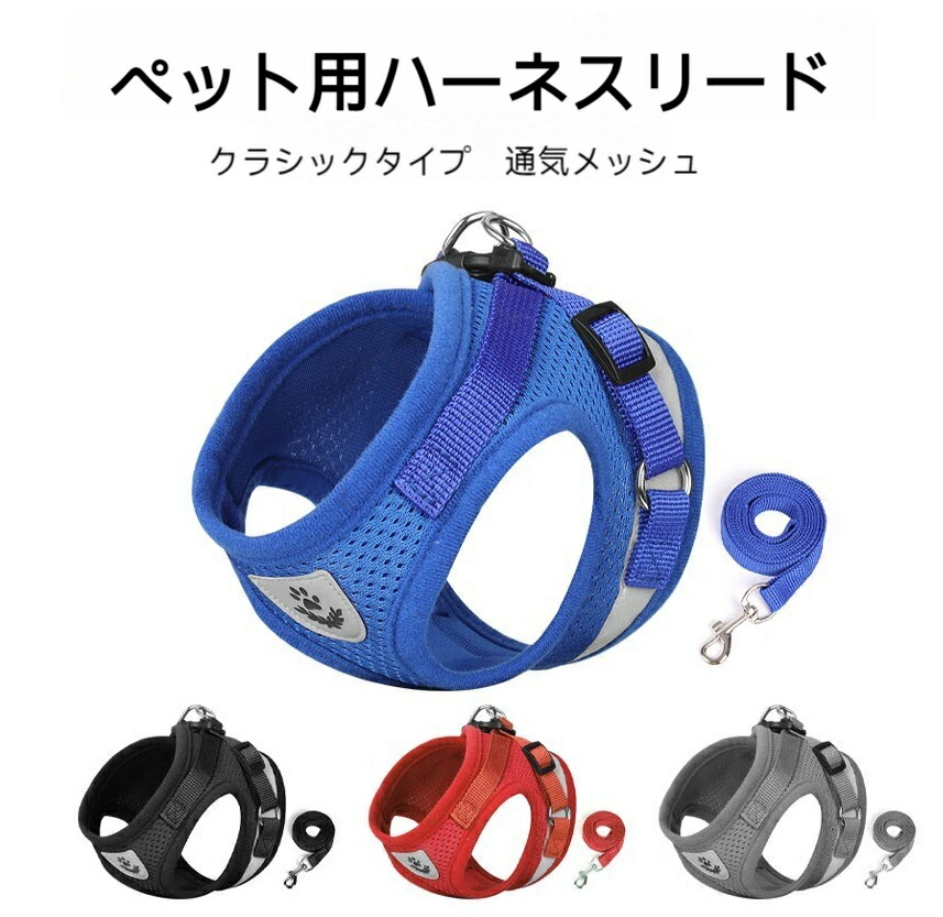 犬用ハーネス リードセット 反射材 メッシュ 胴輪 犬 ペット用品 ハーネス 通気性 調節可能 かわいい ペット ブルー ブラック レッド グレー