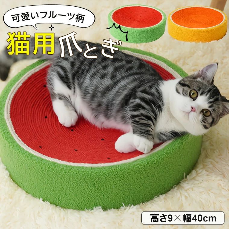 爪とぎ 猫 フルーツ柄 スイカ オレンジ キャット ボウル型 高さ 8cm 幅 40cm サイザル麻 縄巻き ねこ つめとぎ ネコ 爪研ぎ 爪みがき 全2色