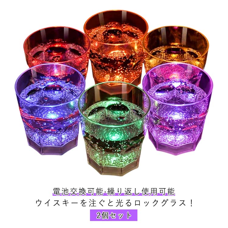 おしゃれ コップ ジョッキ 光る ウイスキー 焼酎 2個セット LED お酒 プラスチック 割れない 光るジョッキ センサーライト ネオン LEDプラスチック キャンプ クリスマス パ 結婚式