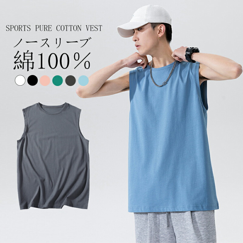ノースリーブ メンズ タンクトップ 大きいサイズ おしゃれ スポーツ Tシャツ 綿100% チョッキ 袖なし ノースリーブシャツ メンズインナー カジュアル ゆったり 無地 運動 キ