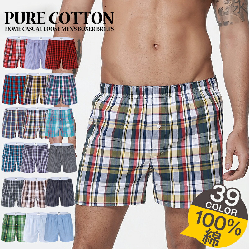 100%綿 ストライプ柄 トランクス 綿ボクサー パンツ コットン100 メンズショーツ ボクサーパンツ 綿パンツ タップパンツ 男性 下着 ゆったり 大きいサイズ チェック柄 綿100%