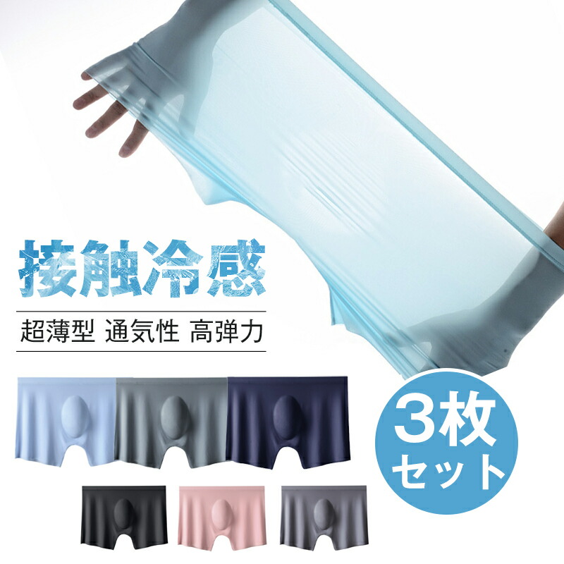 ボクサーパンツ メンズ セット アイスシルク 涼感素材 3枚組 下着 ショーツ アンダーウェア 前閉じ 抗菌 高弾性 接触冷感 無地 男性 セクシー 夏 夏用 オールシーズン 年間 旦