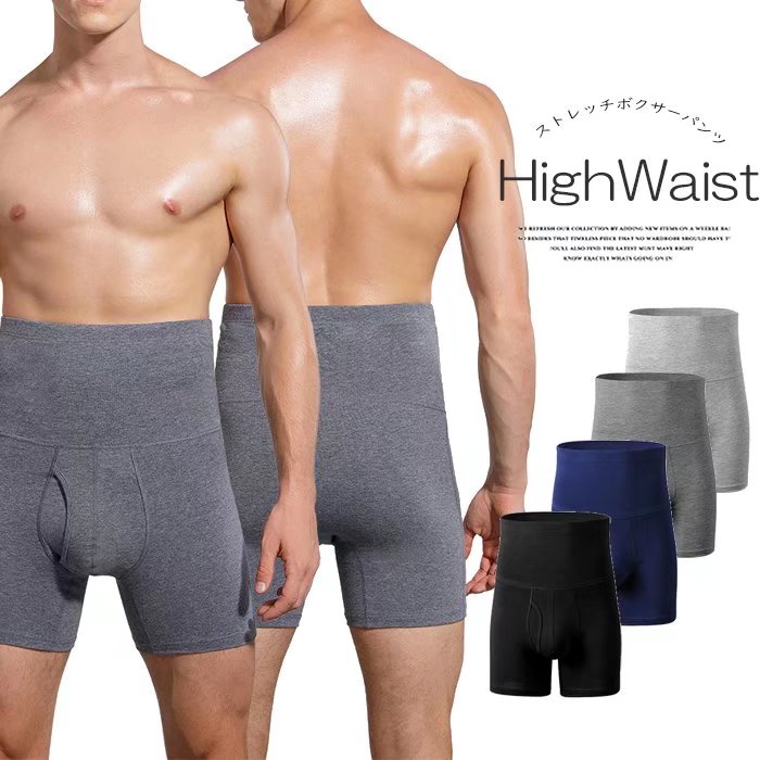 お腹もポカポカ 2枚セット 腹巻ボクサーパンツ メンズ ハイウエスト インナー 下着 男性用 無地 シンプル ヒップアップ 男性用下着 前開きパンツ