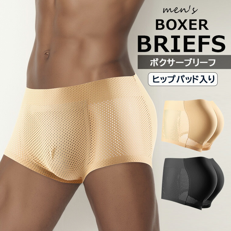 お尻をぐっと持ち上げプリッと見せてくれる メンズ用 ヒップアップ ショーツ パッド入り 1.5cmパッド ヒップパッド 補正下着 メッシュ 通気性 インナー パンツ 伸縮性 ストレッチ ボク