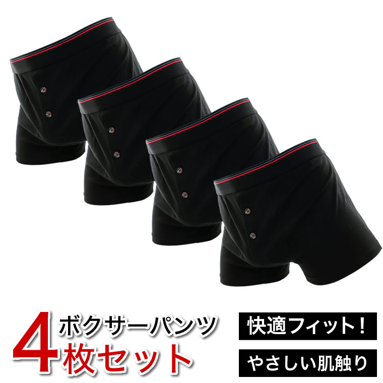 ボクサーパンツ 無地 吸汗 通気 ボクサーブリーフ ブラック 4枚セットインナー 下着 ナイトウェア メンズ インナー