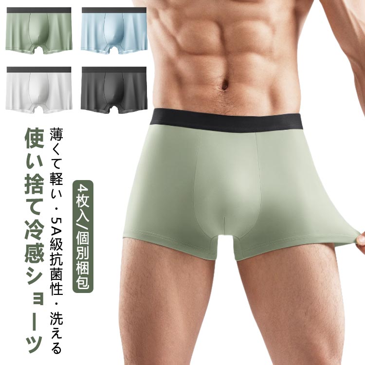 使い捨てパンツ 下着 4枚入 コットン 使い捨て ブリーフ メンズ 接触冷感 個別包装 ショーツ パンツ 避難 抗菌 ボクサーパンツ セット 冷感 男性用 綿 100 涼感 薄手 シームレス 旅 夏用