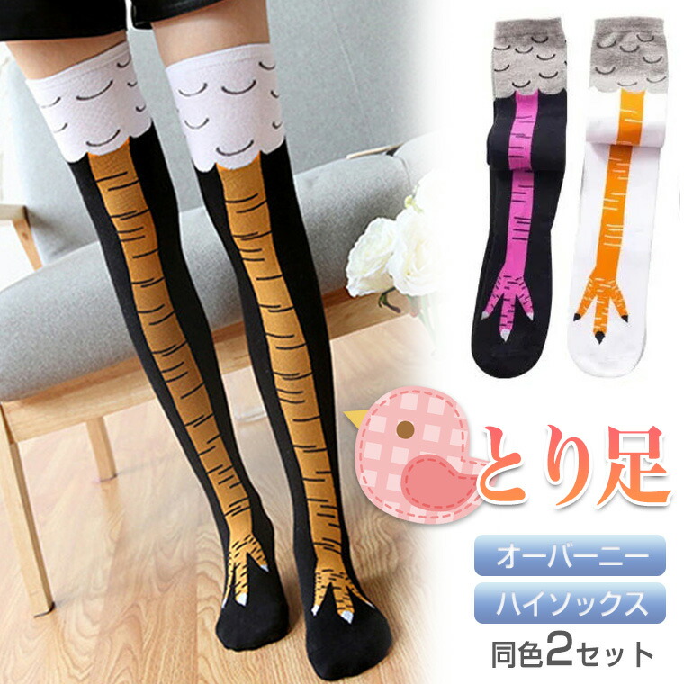 鳥足ソックス オーバーニー ハイソックス ニーハイ 鳥の足 アニマル柄 動物柄 絶対領域 ロング靴下 オーバーニーソックス