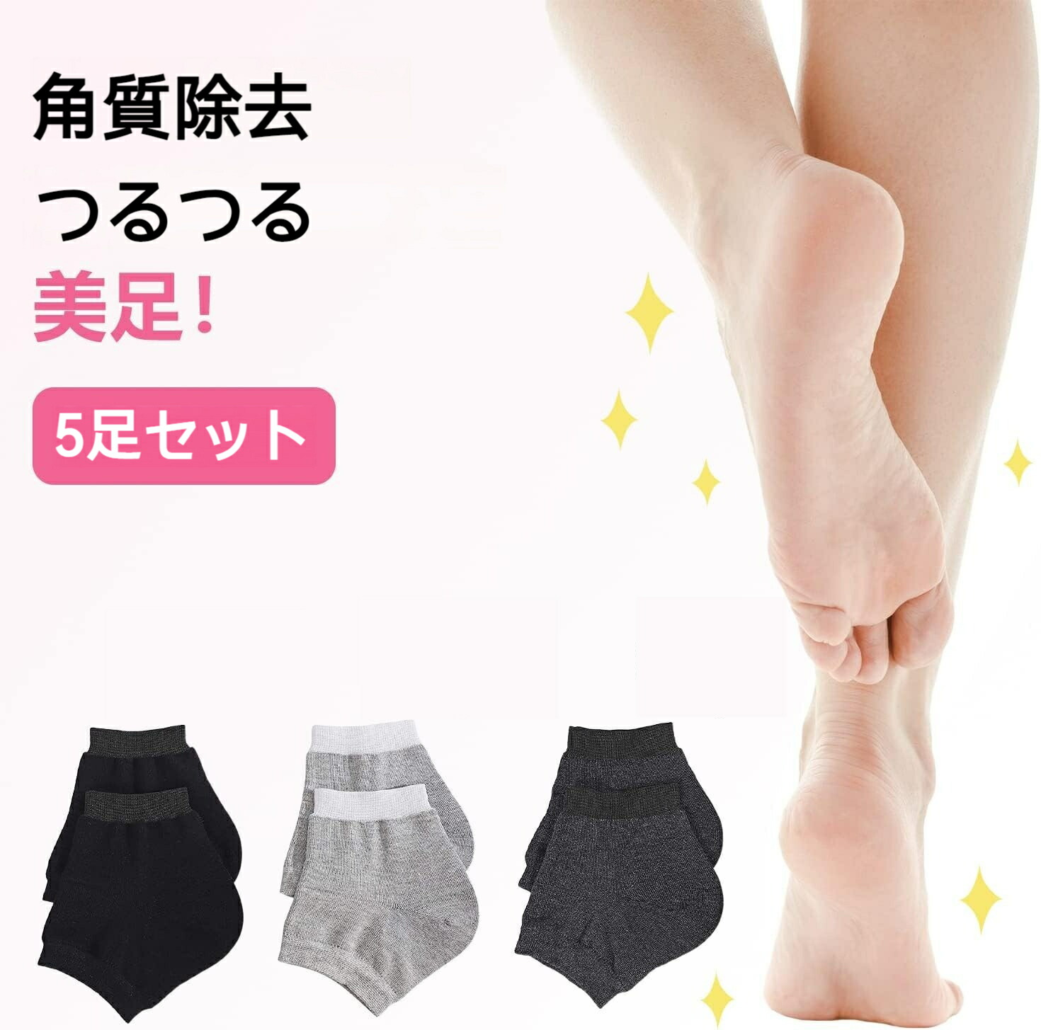 かかと保湿ソックス つるつるかかと ひび割れ対策 はくだけ角質ケア 5足セット おやすみかかとサポーター 男女兼用