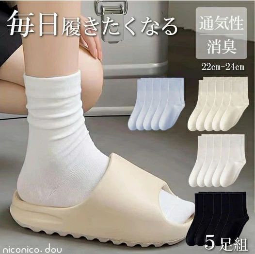 靴下 5足セット 5足組 消臭 通気性 無地 レディース 学生 スクール 学校 仕事 ビジネス 白 表糸 ソックス 冷え対策 通勤 通学 シンブル ギフト ホワイト ブ プレゼント