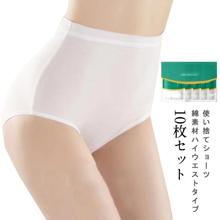 10枚セット 使い捨てショーツ レディース 使い捨て 綿 コットン ショーツ ハイウエスト 使い捨て下着 除菌 通気 吸湿 柔らか 快適 伸縮 女性用 旅行用下着 旅行 業務 施術用 入院 出張